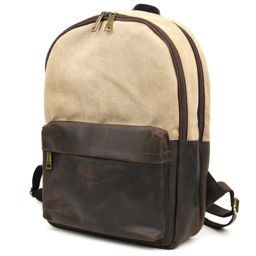 Рюкзак з кінської шкіри та пісочного канвасу TARWA RCs-7273-3md