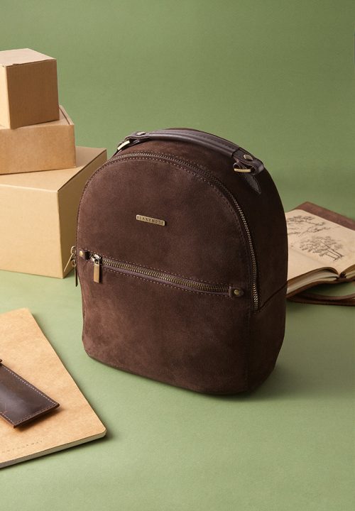 Шкіряний жіночий міні-рюкзак Kylie Темно-коричнева замша