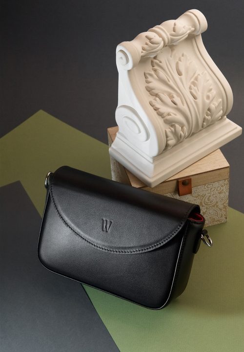 Жіноча шкіряна сумка Molly чорна з червоною підкладкою