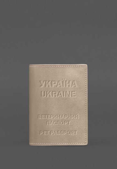 Шкіряна обкладинка на ветеринарний паспорт 2.0 світло-бежева