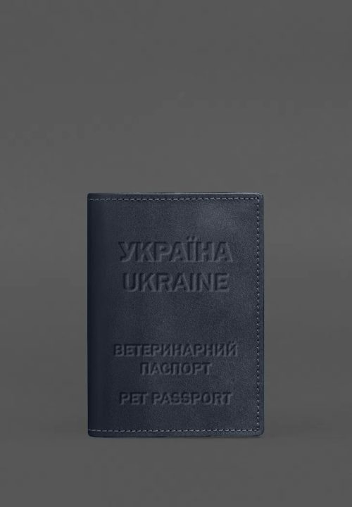 Шкіряна обкладинка на ветеринарний паспорт 2.0 темно-синя