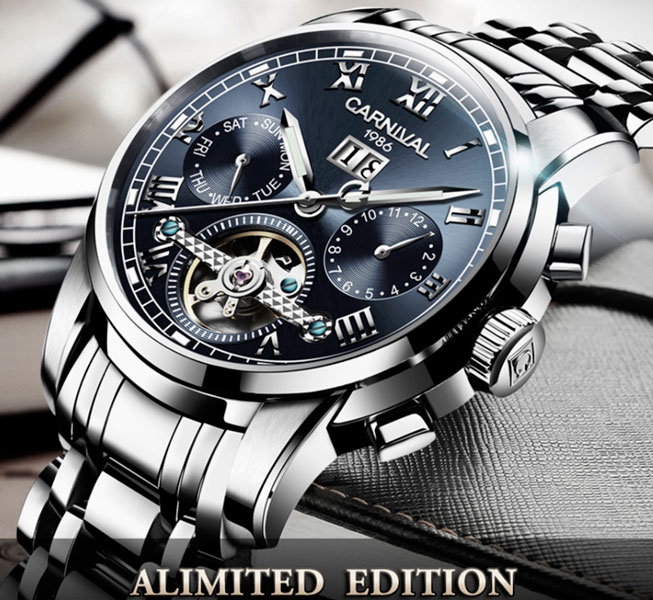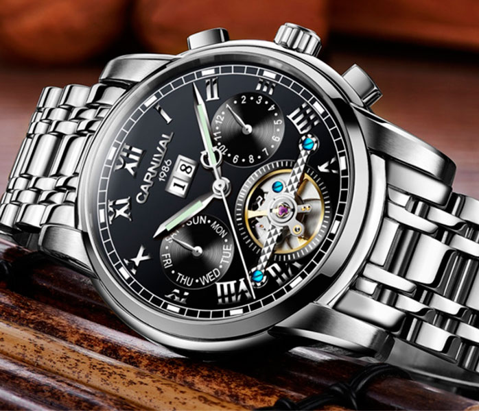 Чоловічі механічні годинники Carnival – це втілення престижу та надійності у кожній деталі. Оснащені високоточним японським механізмом із 25 каменями, вони забезпечують стабільну та довговічну роботу. Завдяки сапфіровому склу годинник стійкий до подряпин і зберігає бездоганний вигляд протягом багатьох років.Ми пропонуємо офіційну гарантію 12 місяців та є єдиними ексклюзивними представниками Carnival в Україні, що гарантує оригінальність кожної моделі.Основні переваги Carnival: • японський механізм із 25 каменями; • міцне сапфірове скло; • офіційна гарантія 12 місяців; • ексклюзивна дистрибуція в Україні; • преміальний дизайн та бездоганна якість.Годинники Carnival створені для чоловіків, які цінують престиж, точність та безкомпромісну якість.Примітка: Ремінець який зображено на головному фото являється додатковим і вкладається в посилку окремо.