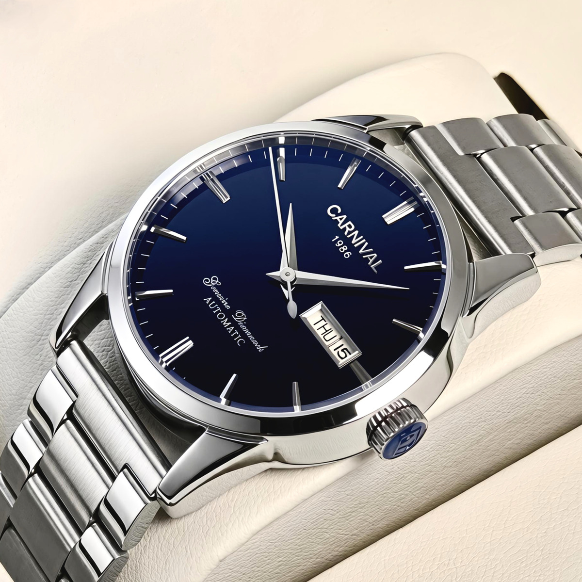 Чоловічі механічні годинники Carnival – це втілення престижу та надійності у кожній деталі. Оснащені високоточним японським механізмом із 21 каменем, вони забезпечують стабільну та довговічну роботу. Завдяки сапфіровому склу годинник стійкий до подряпин і зберігає бездоганний вигляд протягом багатьох років.Ми пропонуємо офіційну гарантію 12 місяців та є єдиними ексклюзивними представниками Carnival в Україні, що гарантує оригінальність кожної моделі.Основні переваги Carnival: • японський механізм із 21 каменем; • міцне сапфірове скло; • офіційна гарантія 12 місяців; • ексклюзивна дистрибуція в Україні; • преміальний дизайн та бездоганна якість.Годинники Carnival створені для чоловіків, які цінують престиж, точність та безкомпромісну якість.Годинник комплектується 2 ремінцями: Основний – шкіряний чорний;Додатковий – сріблястий металевий браслет.