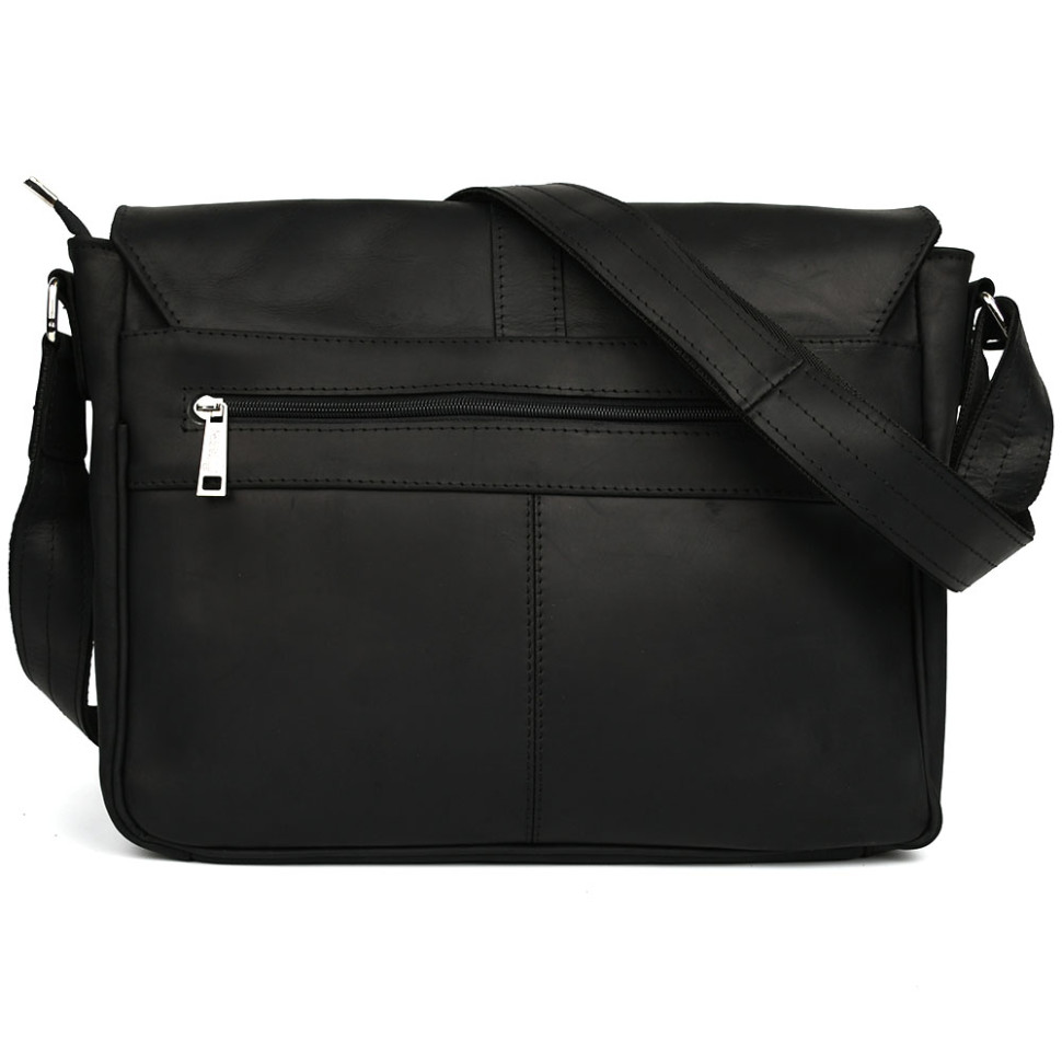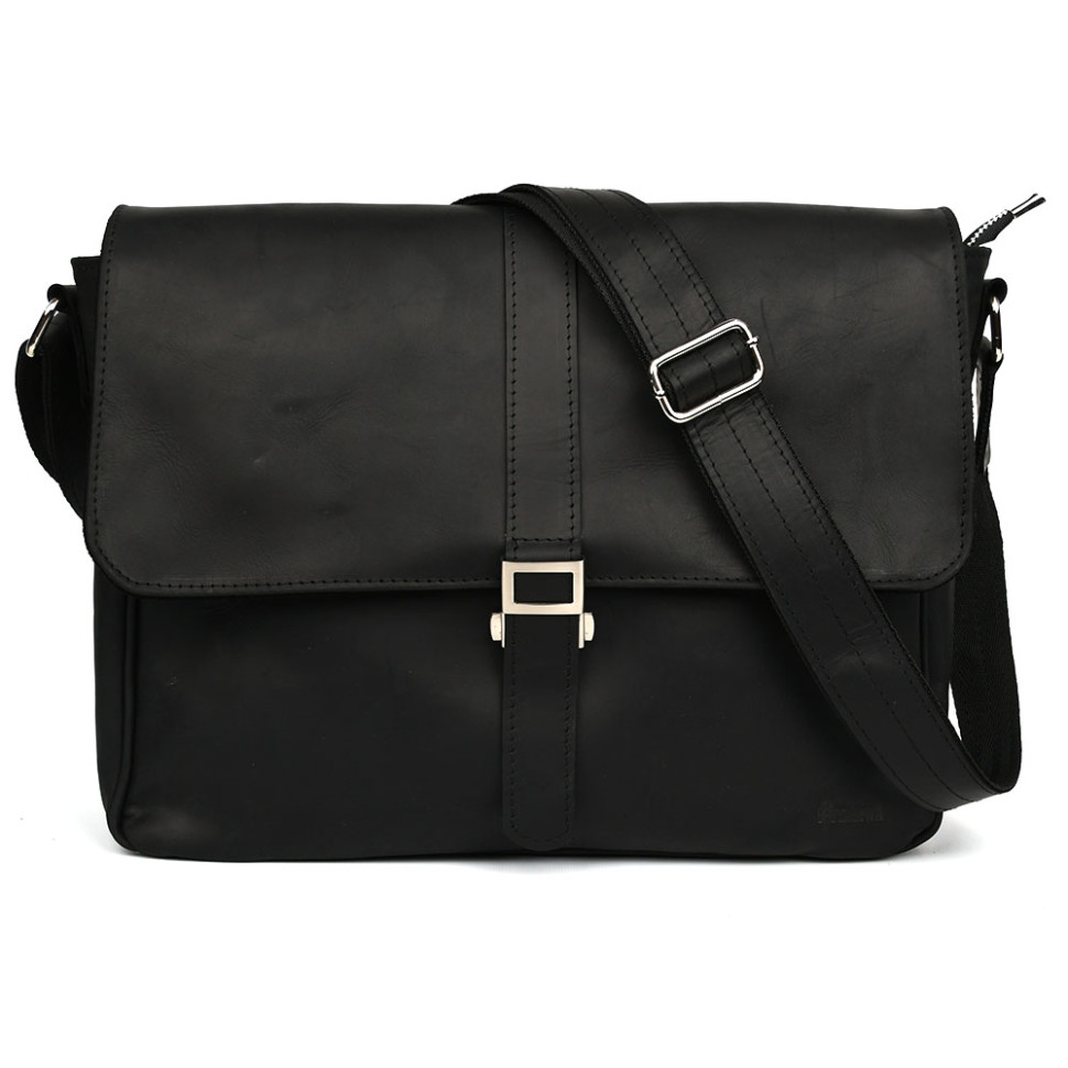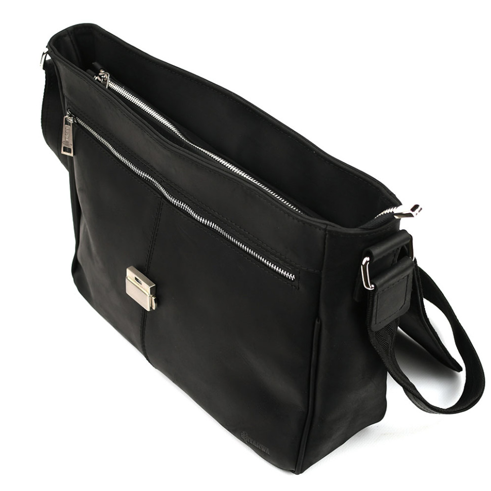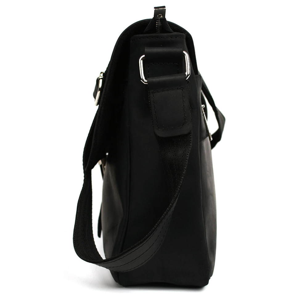 Чоловіча сумка через плече із чорний крейзі хорс TARWA RA-1046-3md. Для перенесення ноутбука до 14” або документів формату А4.