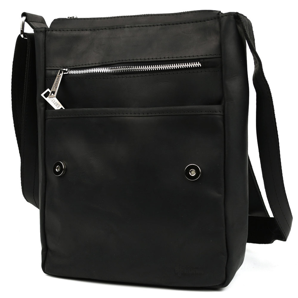 Чоловіча сумка шкіряна А4 через чорне плече RA-1501-3md TARWA crazy horse від українського бренду TARWA. Сумка має розміри, завдяки чому всередину вільно розміщуються документи формату А4, ноутбук 13-14”.