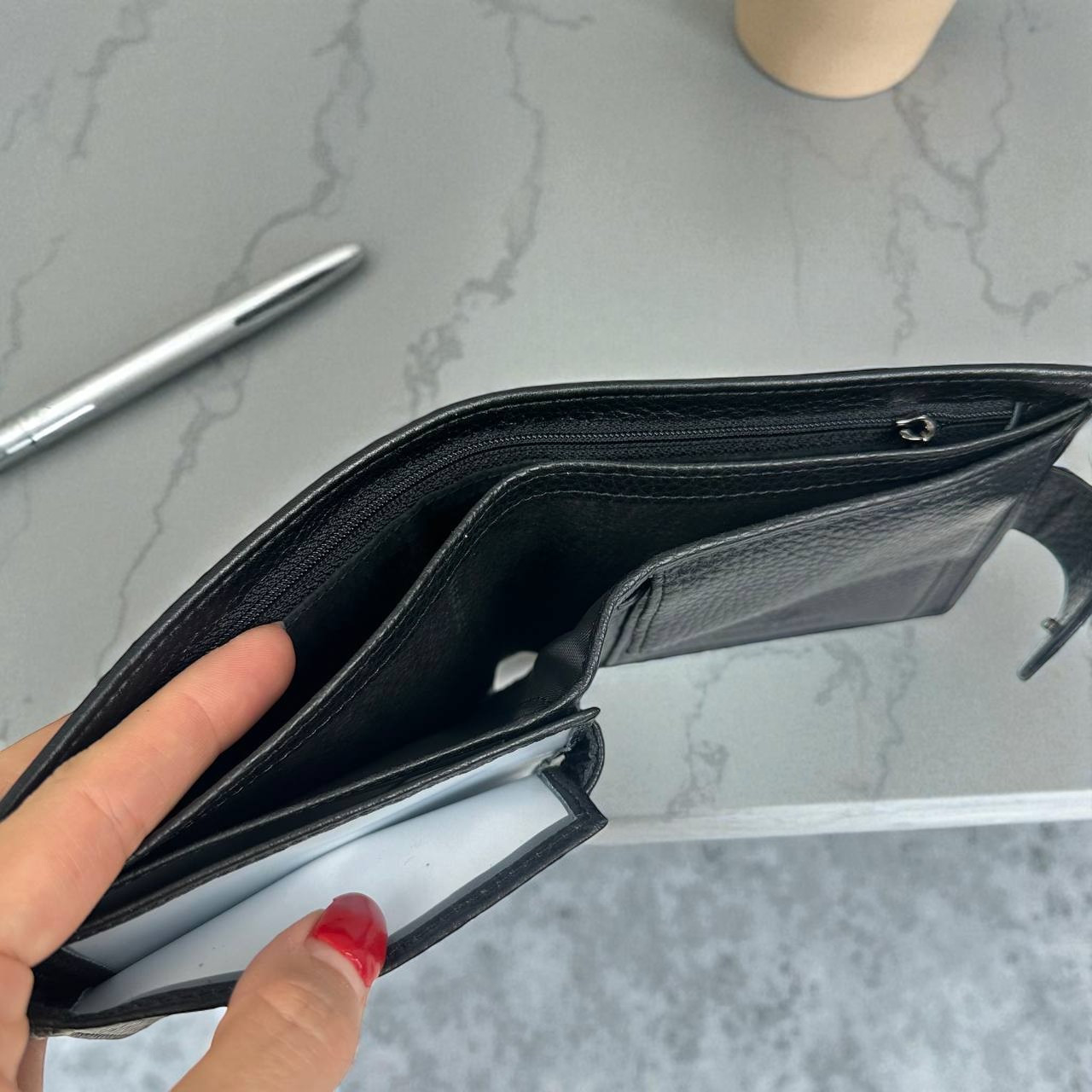 Внутрішні перегородки виготовлені також із натуральної шкіри, що ще раз підкреслює високу якість цієї моделі;