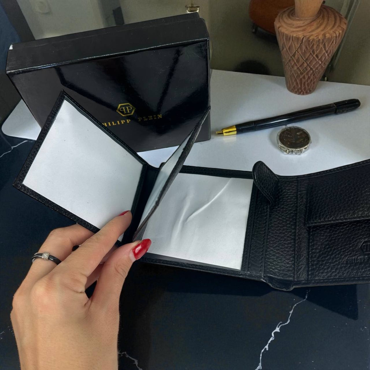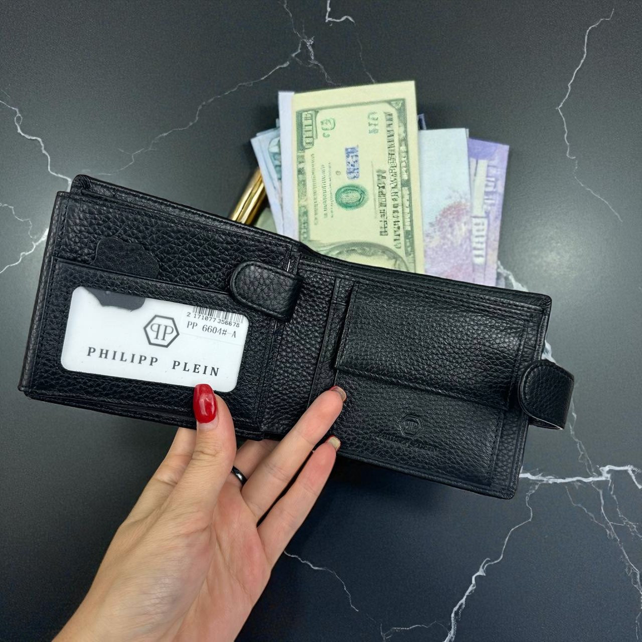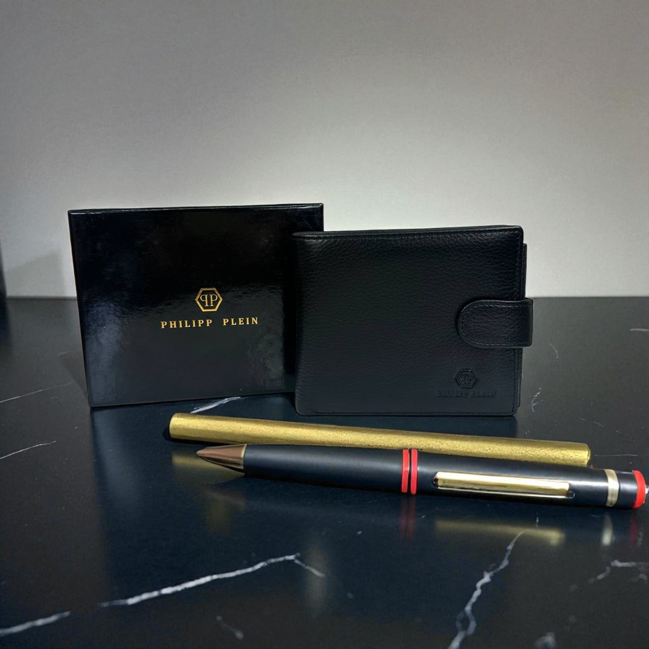 Чоловічий шкіряний гаманець у коробці Philipp Plein люкс якість, портмоне натуральна шкіра Філіп Плеїн