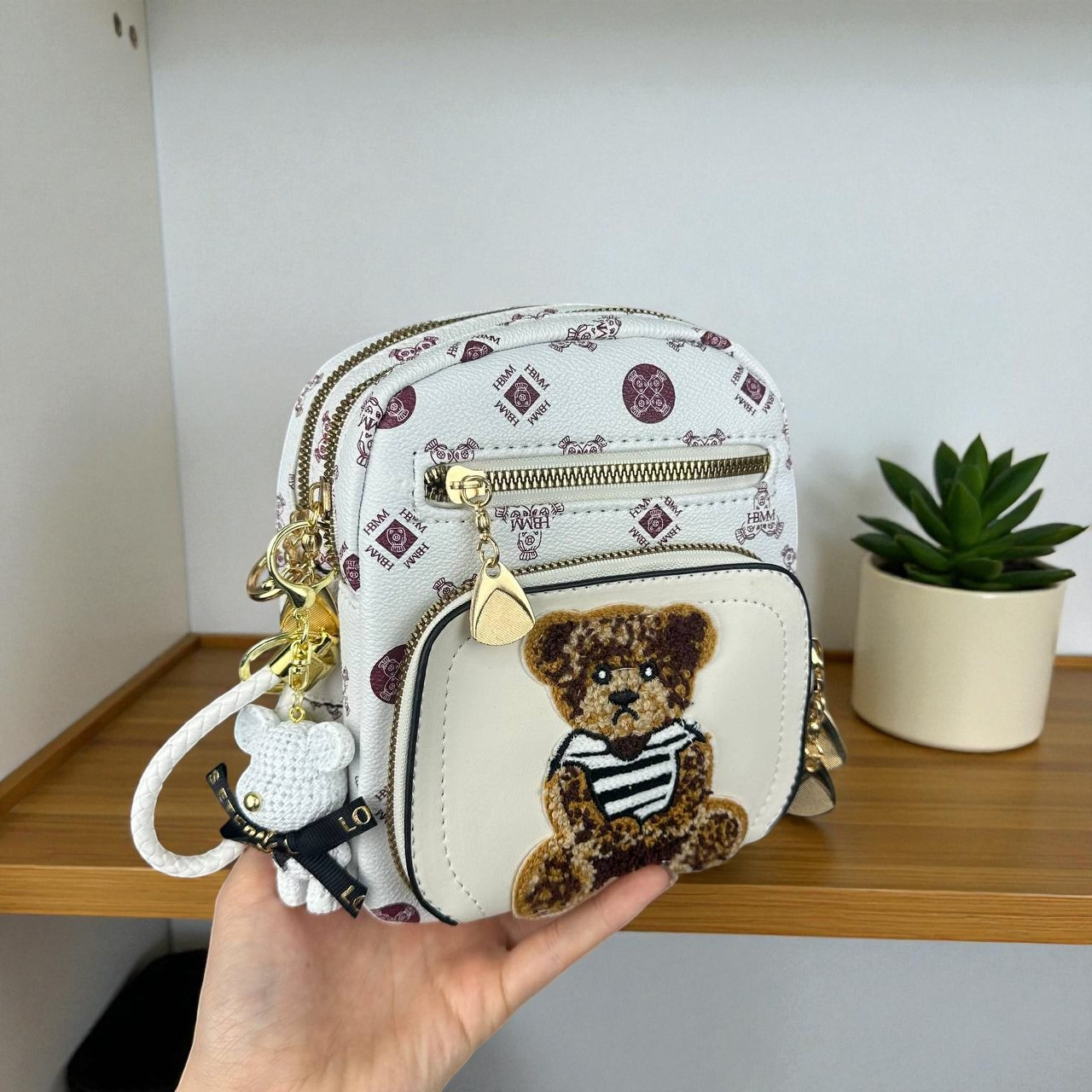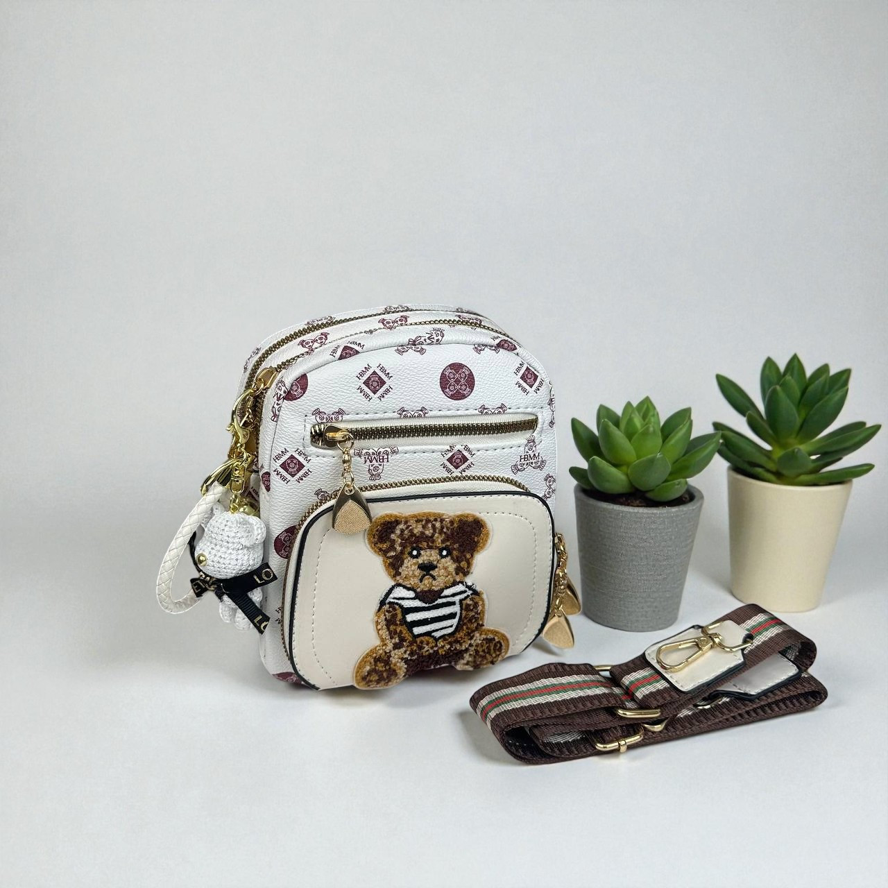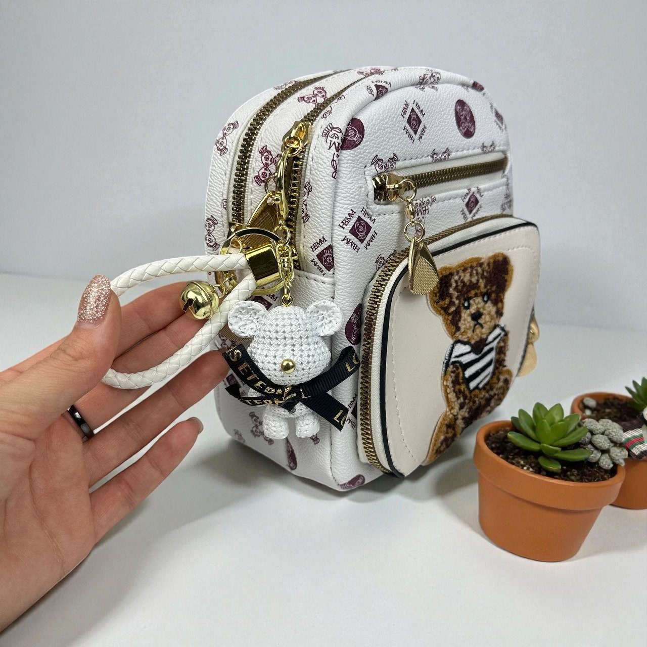 Дитяча сумочка з ведмедиком і брелоком, маленька сумка для дівчинки з ведмедем біла
