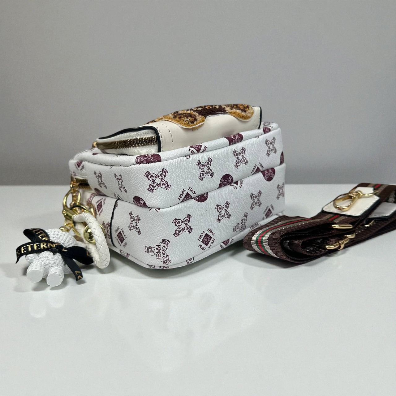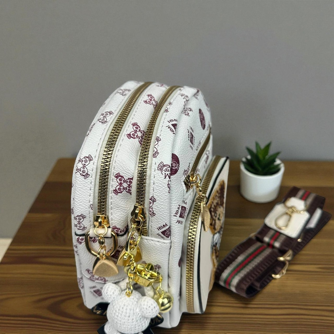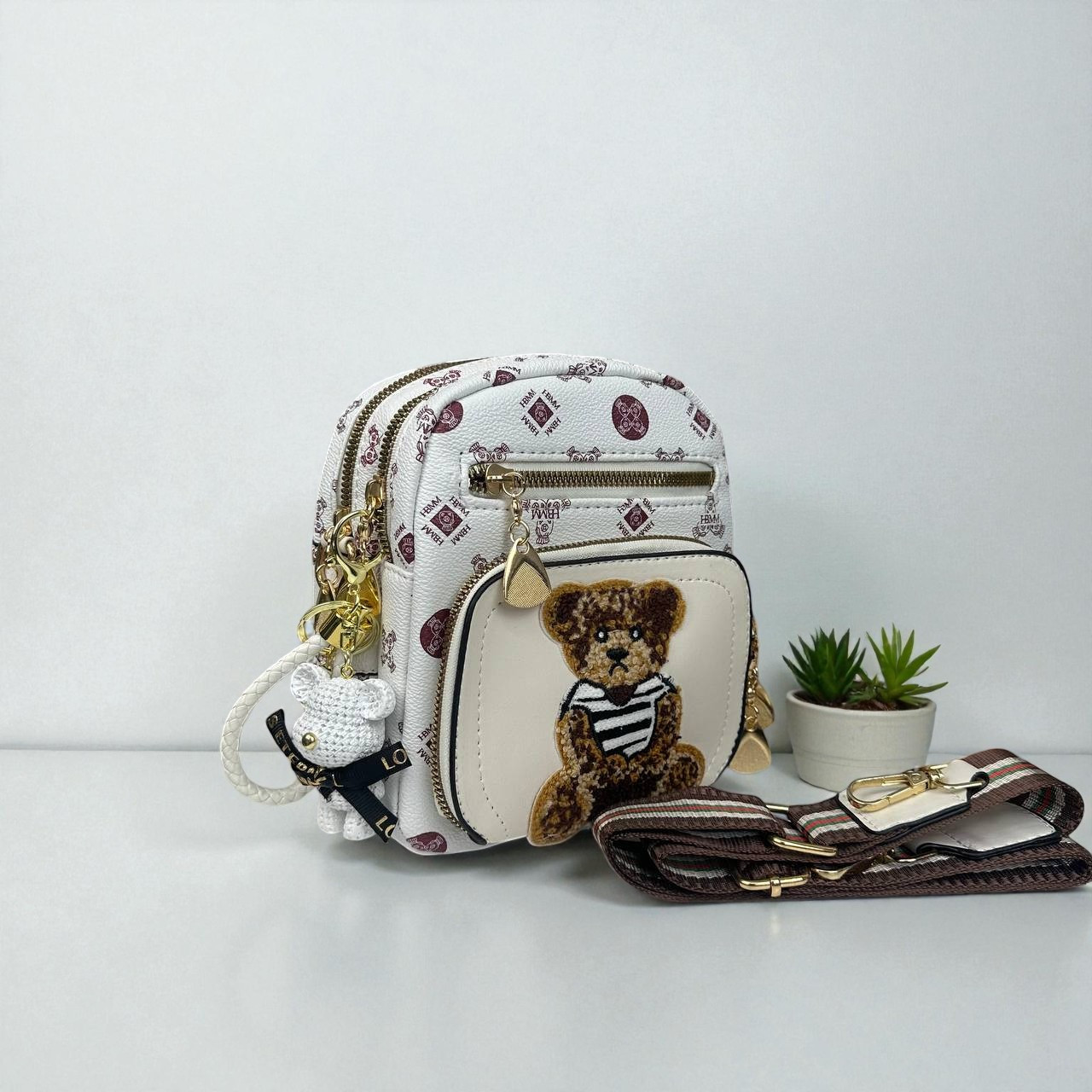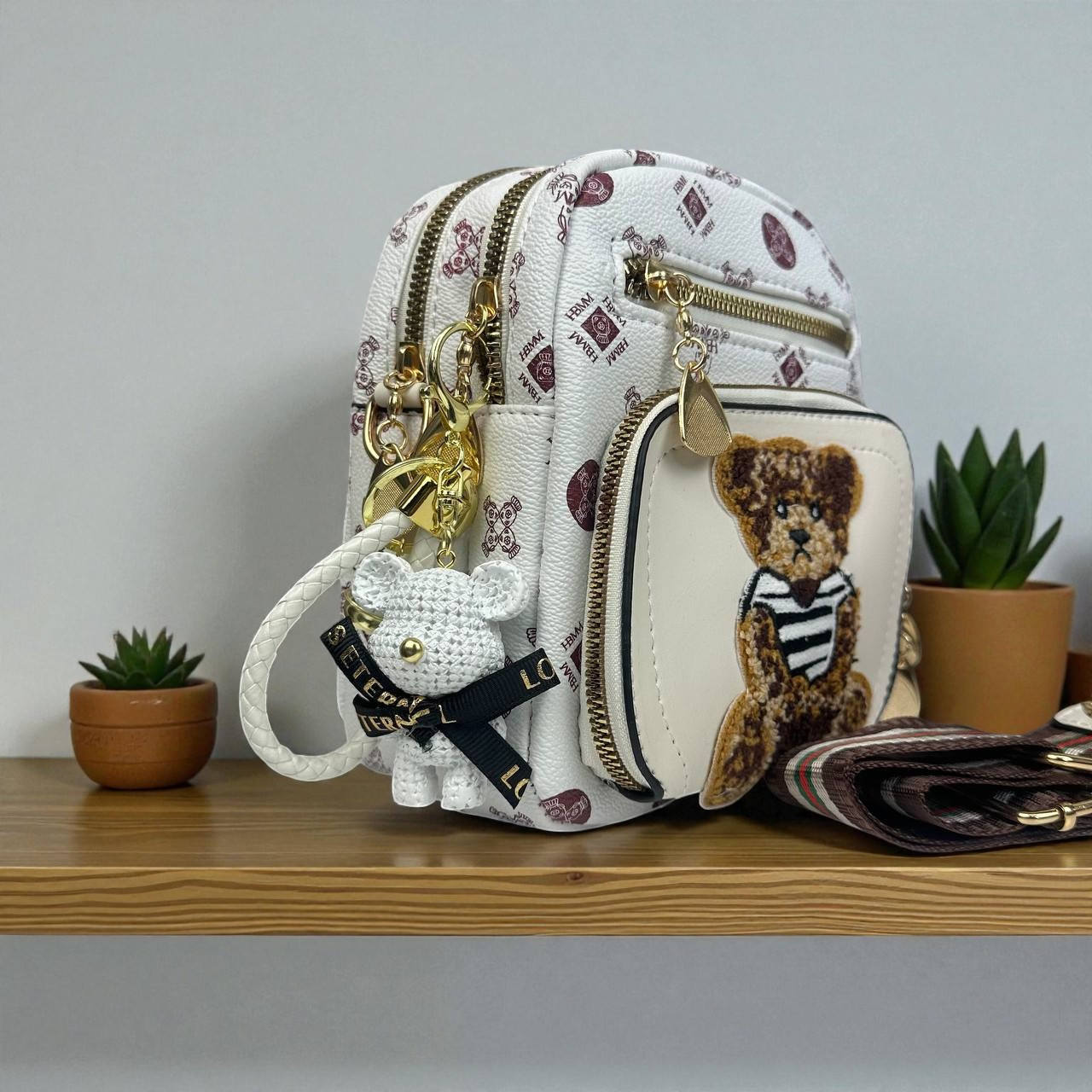 Дитяча сумочка з ведмедиком і брелоком, маленька сумка для дівчинки з ведмедем біла