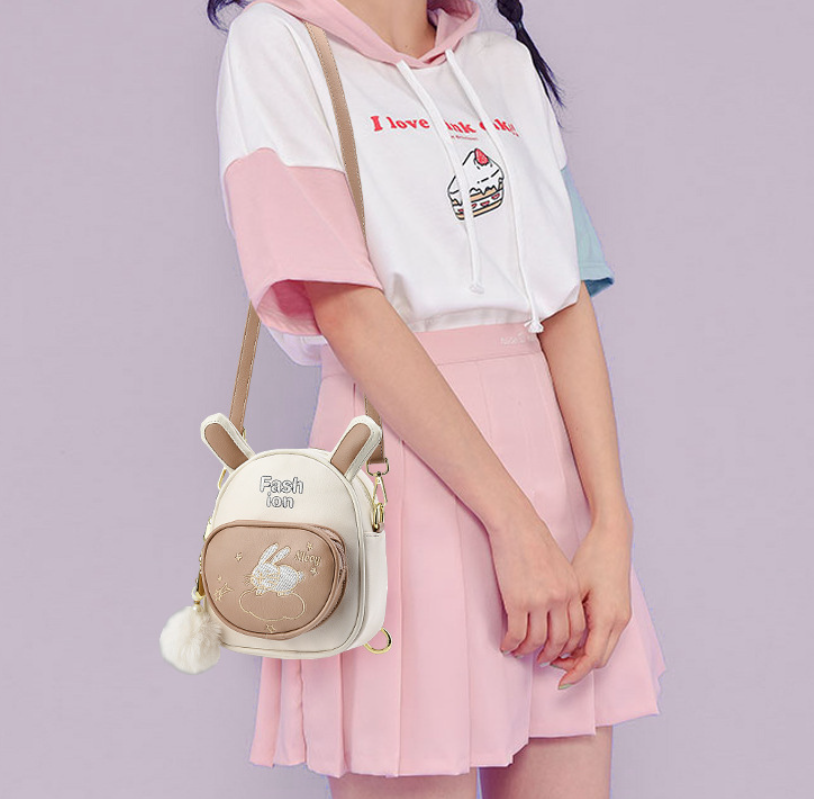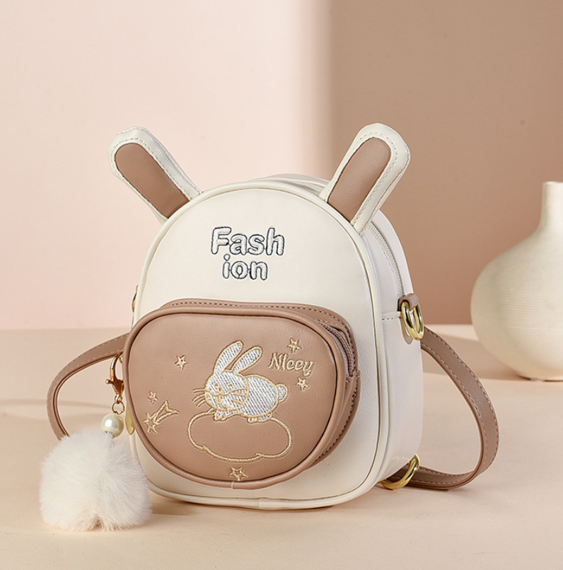 Дитячий міні рюкзачок Fashion з вушками та хутряним брелоком, маленька сумка рюкзачок із вухами для дівчаток