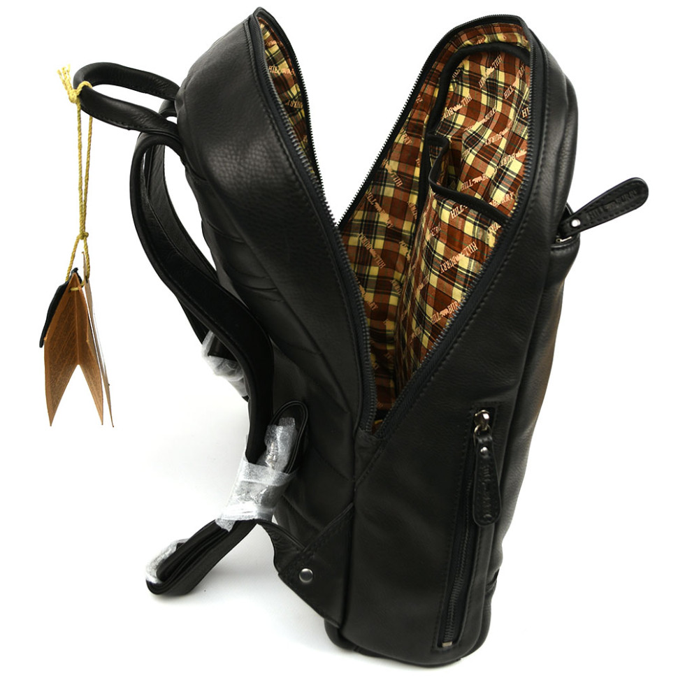 Міський шкіряний рюкзак HILL BURRY HB15295A чорний: для ноутбука та документів, на кожен день, у відрядження, похід чи подорож.