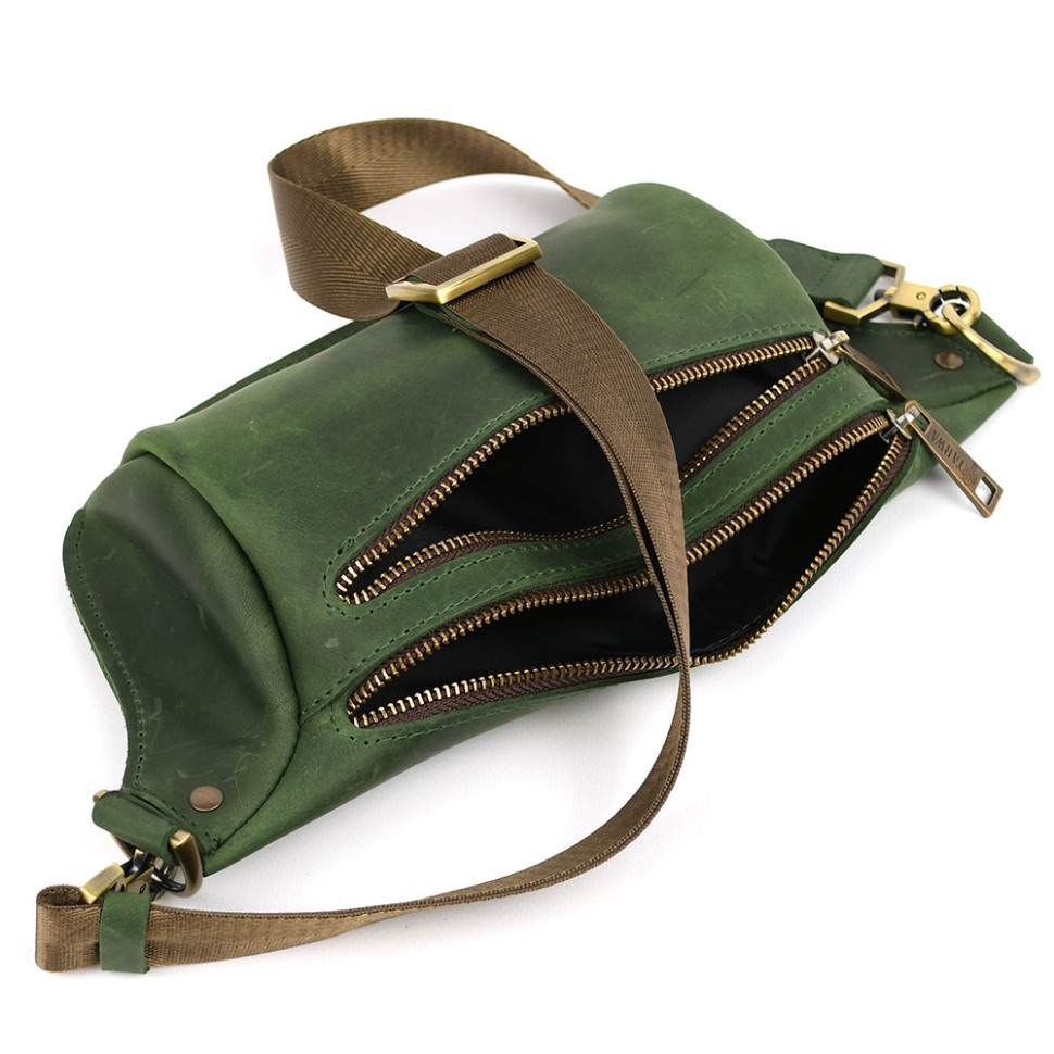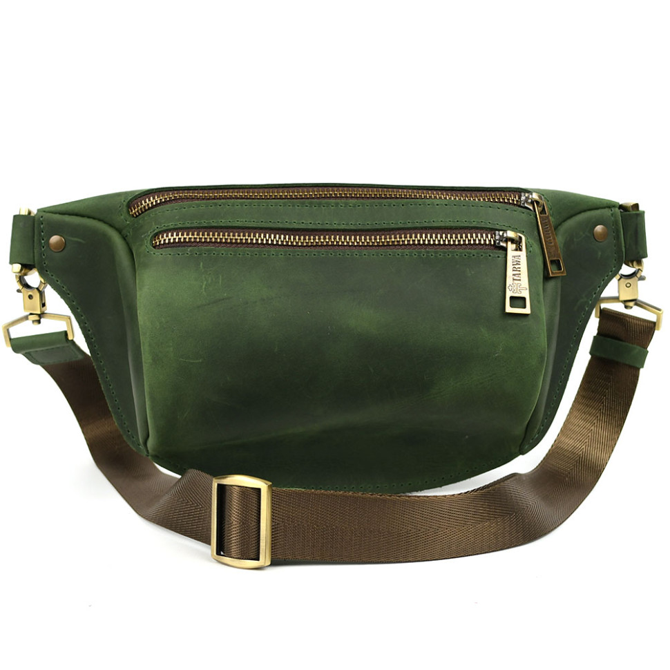 Напоясна сумка бананка в розмірі TARWA RE-3105-2lx зелена 2 відділення. Дві блискавки спереду: одне основне відділення та передня кишеня на блискавці. Усередині тканинна підкладка.