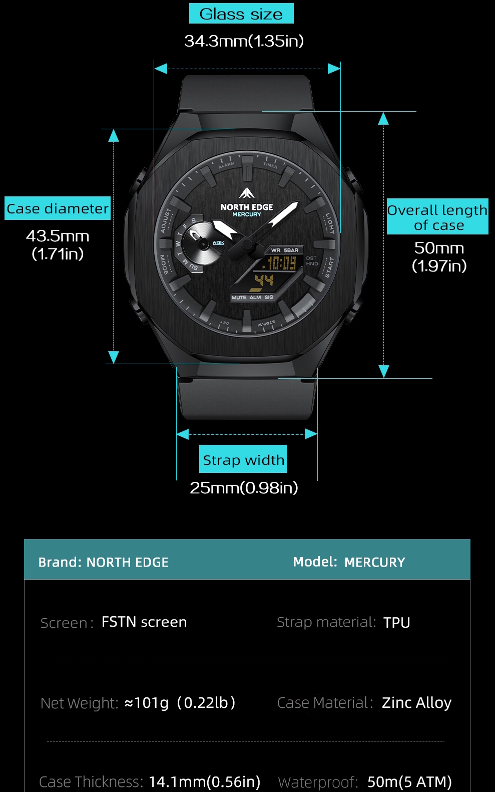 North Edge – це бренд тактичних годинників, які спеціально розроблені для військових, пілотів, моряків і т.д., які працюють в надскладних умовах. Ці годинники призначені для використання в екстремальних ситуаціях, де точність, надійність та функціональність є критичними.Годинники від бренду North Edge можуть витримувати ультрахолодні температури, а також мають в собі важливі функції, такі як підсвітка, таймер, будильник та інші. Бренд North Edge має репутацію надійних і якісних годинників.В комплекті йде офіційна гарантія на 12 місяців.Детальніше про функції: