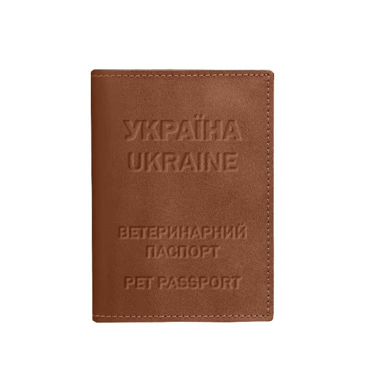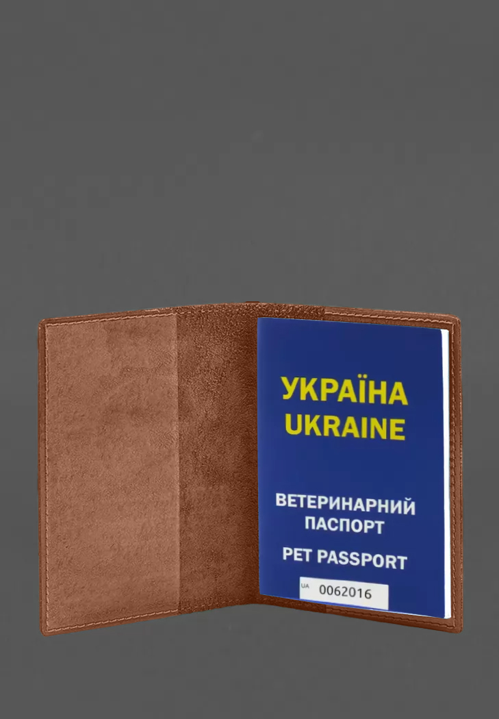 Світло-коричнева шкіряна обкладинка для ветеринарного паспорта