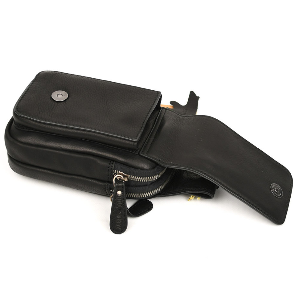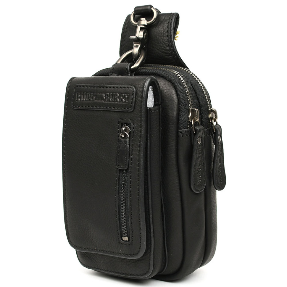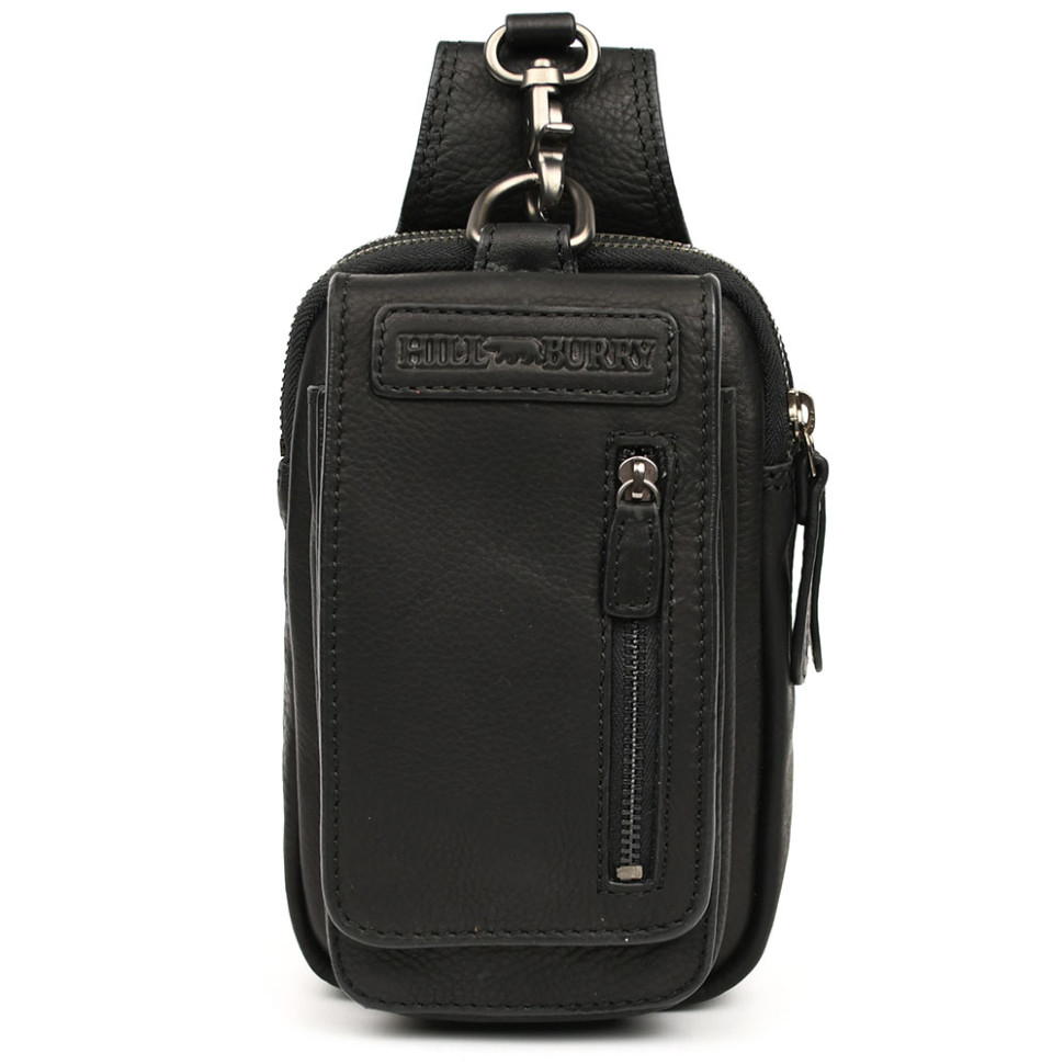 Шкіряна сумка чохол, через плече Hill Burry HB100A чорна. Розміри 23 * 14 * 7,5см. Італія.