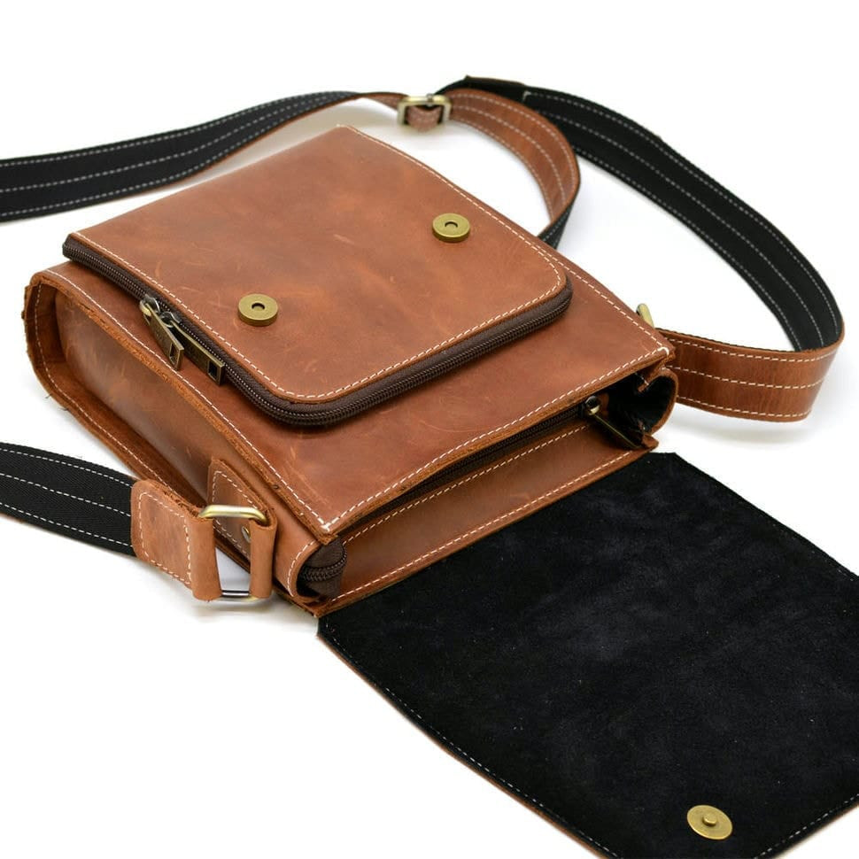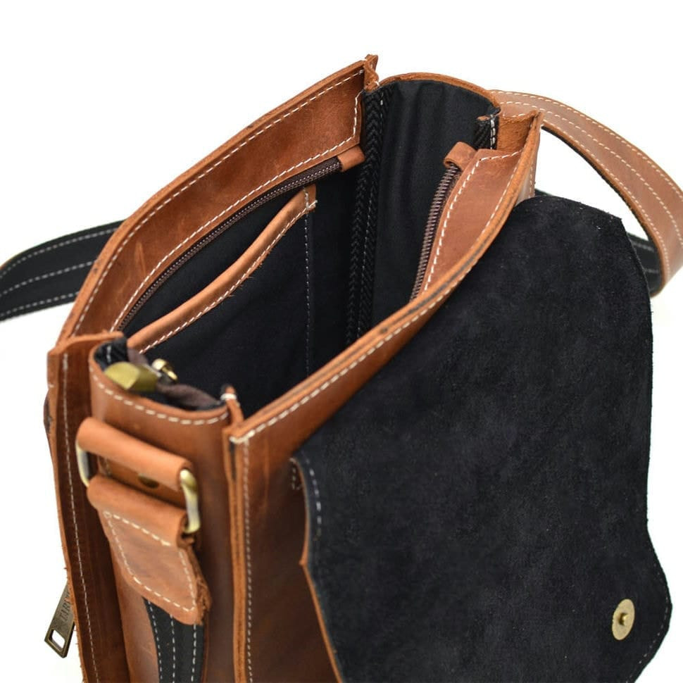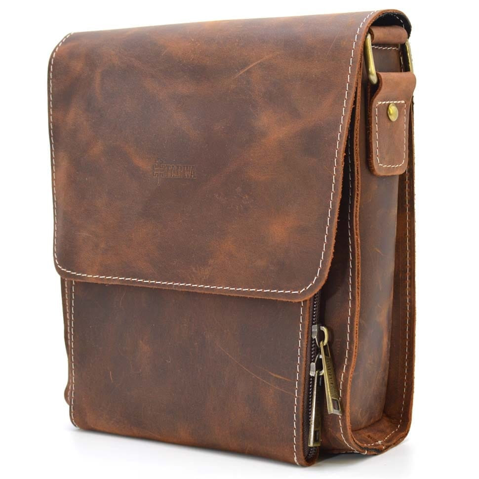 Шкіряна сумка-планшет через плече RYw-3027-4lx бренду TARWA теракот із клапаном на магнітах. Крута вінтажна руда шкіра з пулл-ап ефектом (ефект старіння та подряпин).