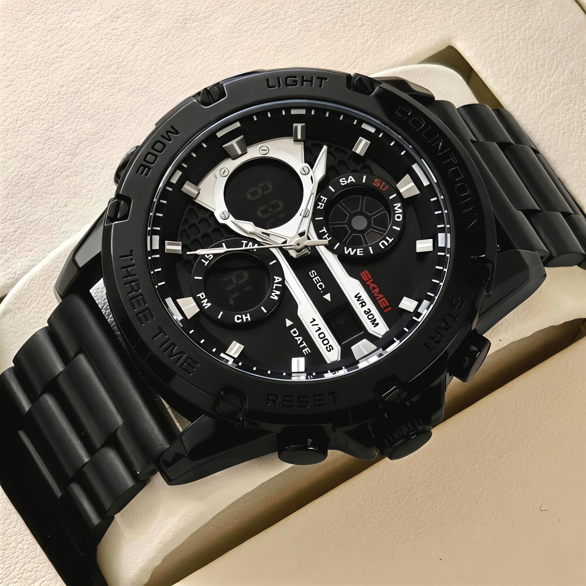 Skmei – це бренд, який завоював довіру мільйонів користувачів у всьому світі завдяки поєднанню сучасного дизайну, надійності та доступної ціни. Годинники цієї марки створені для активних людей, які цінують стиль та практичність у будь-яких умовах.Моделі Skmei відзначаються підвищеною міцністю та функціональністю: вони витримують повсякденні навантаження та стабільно працюють навіть у складних погодних умовах. Це саме той аксесуар, який стане вашим надійним партнером у спорті, подорожах та щоденному ритмі життя.Завдяки поєднанню високої якості та привабливого дизайну, Skmei заслужено входить у число найпопулярніших брендів на українському та європейському ринках.До кожного годинника додається офіційна гарантія 12 місяців.Годинник комплектується 2 ремінцями: Основний – шкіряний коричневий;Додатковий – чорний металевий браслет.