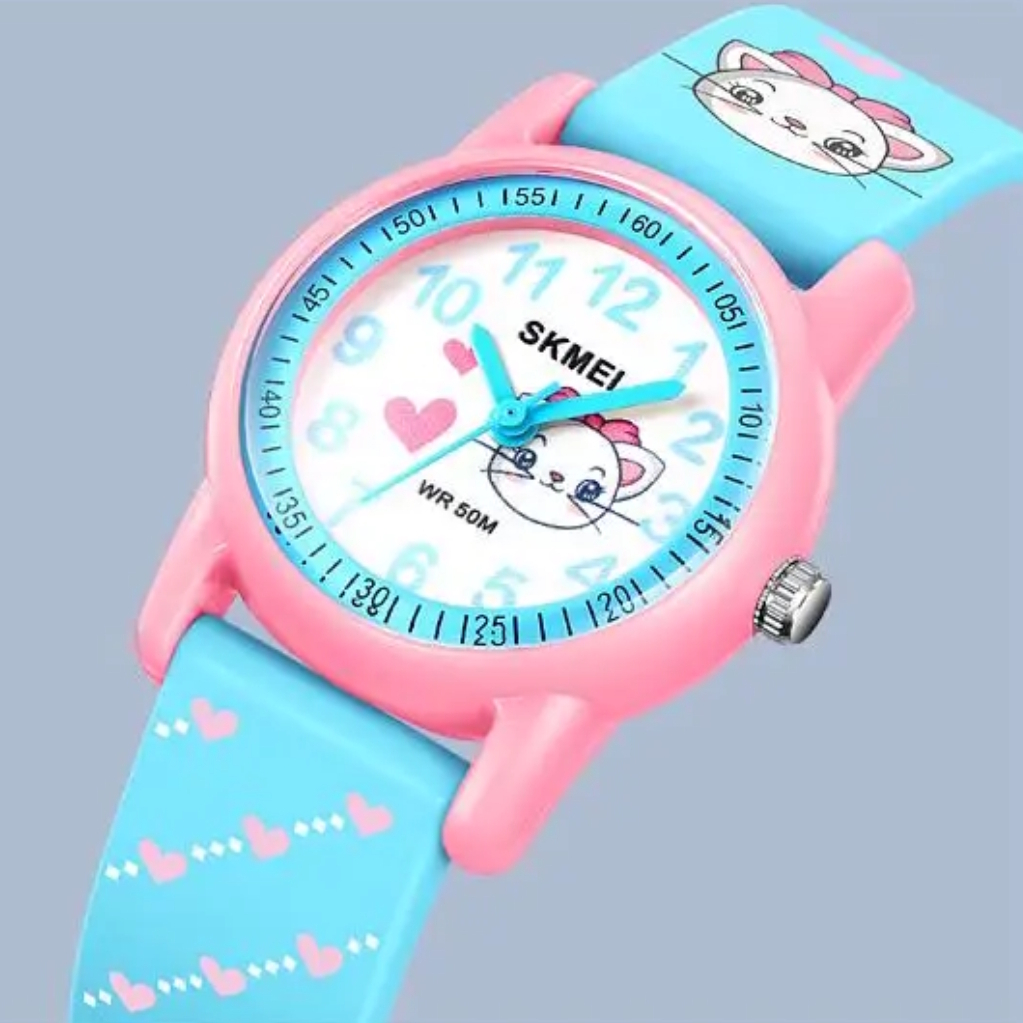 Skmei – це бренд, який завоював довіру мільйонів користувачів у всьому світі завдяки поєднанню сучасного дизайну, надійності та доступної ціни. Годинники цієї марки створені для активних людей, які цінують стиль та практичність у будь-яких умовах.Моделі Skmei відзначаються підвищеною міцністю та функціональністю: вони витримують повсякденні навантаження, контакт із водою та стабільно працюють навіть у складних погодних умовах. Це саме той аксесуар, який стане вашим надійним партнером у спорті, подорожах та щоденному ритмі життя.Завдяки поєднанню високої якості та привабливого дизайну, Skmei заслужено входить у число найпопулярніших брендів на українському та європейському ринках.Skmei Kitty – модель розроблена для дівчат від 4-х років до 10 років. Завдяки невеликому розміру та яскравому дизайну, вона буде чудовим подарунком дівчатам, а також дасть змогу дитині вивчати як орієнтуватися в часі та розвиватися.До кожного годинника додається офіційна гарантія 12 місяців.