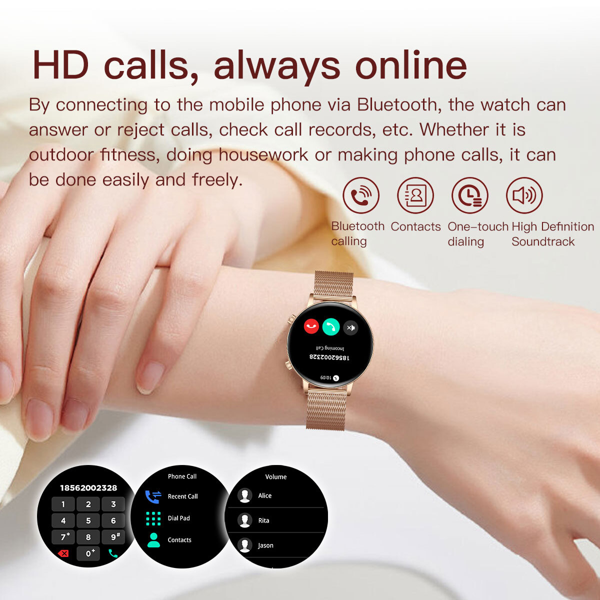 Функції: Вимірювання пульсу/кисню в крові; Дихальні вправи; Лічильник калорій; Моніторинг сну; Понад 100 режимів спортивних тренувань; Дистанційна статистика; Голосовий помічник; Повідомлення про вхідний дзвінок та надходження повідомлення; Віддалене управління програвачем телефону; Зміна заставок дисплея і можливість поставити фото з телефону; Відображення погоди