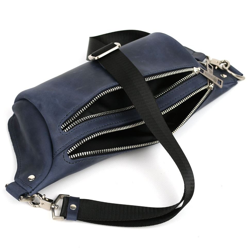 Сумка бананка в розмірі L TARWA RK-3106-2lx синя 2 відділення. Дві блискавки спереду: одне основне відділення та передня кишеня на блискавці. Усередині тканинна підкладка.