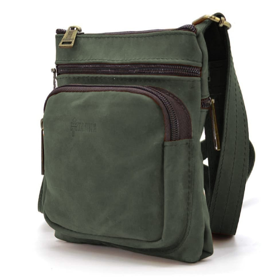 Сумка чоловіча через плече шкіряна crazy horse TARWA Зелений (RЕ-1342-2-3md)