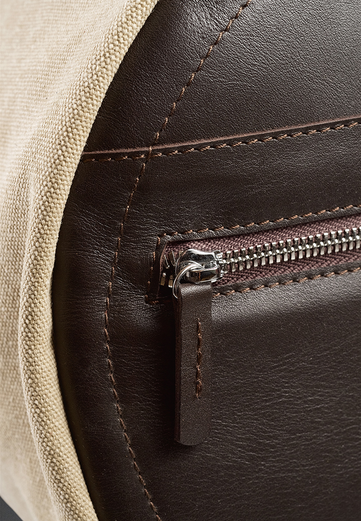 Основу виробу складає щільний канвас, який добре тримає форму, стійкий до зношування та підходить для щоденного навантаження. Темно-коричневі вставки з гладкої натуральної шкіри додають сумці статусності, підкреслюють характер моделі та забезпечують додаткову міцність у зонах активного використання. Внутрішня підкладка з саржі приємна на дотик, зносостійка та легко очищується.