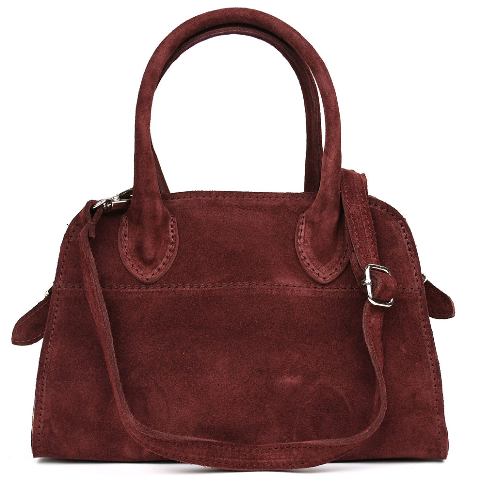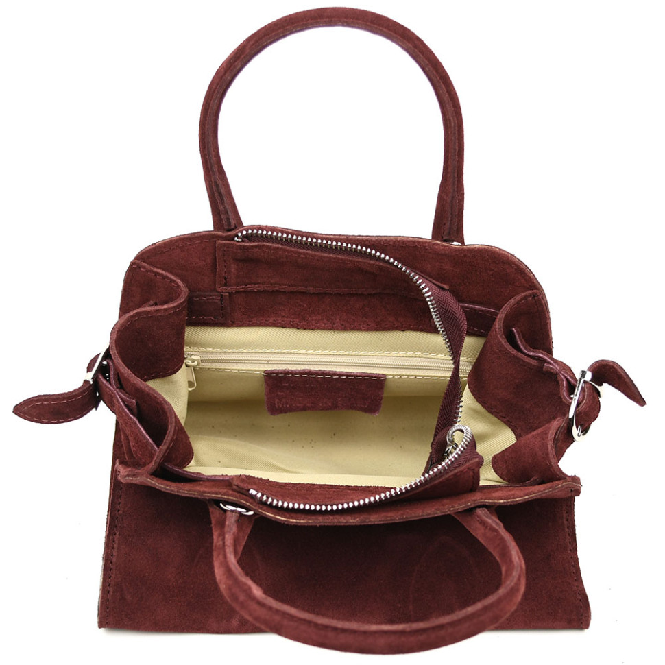 Замшева жіноча сумка тоут Італія Firenze fz3752_bordo бордо Розміри сумки: висота 17см, глибина 19см, ширина 27см Невелика замшева сумка Дві ручки Ремінь у комплекті Всередині тканинна підкладка, кишеня на блискавці