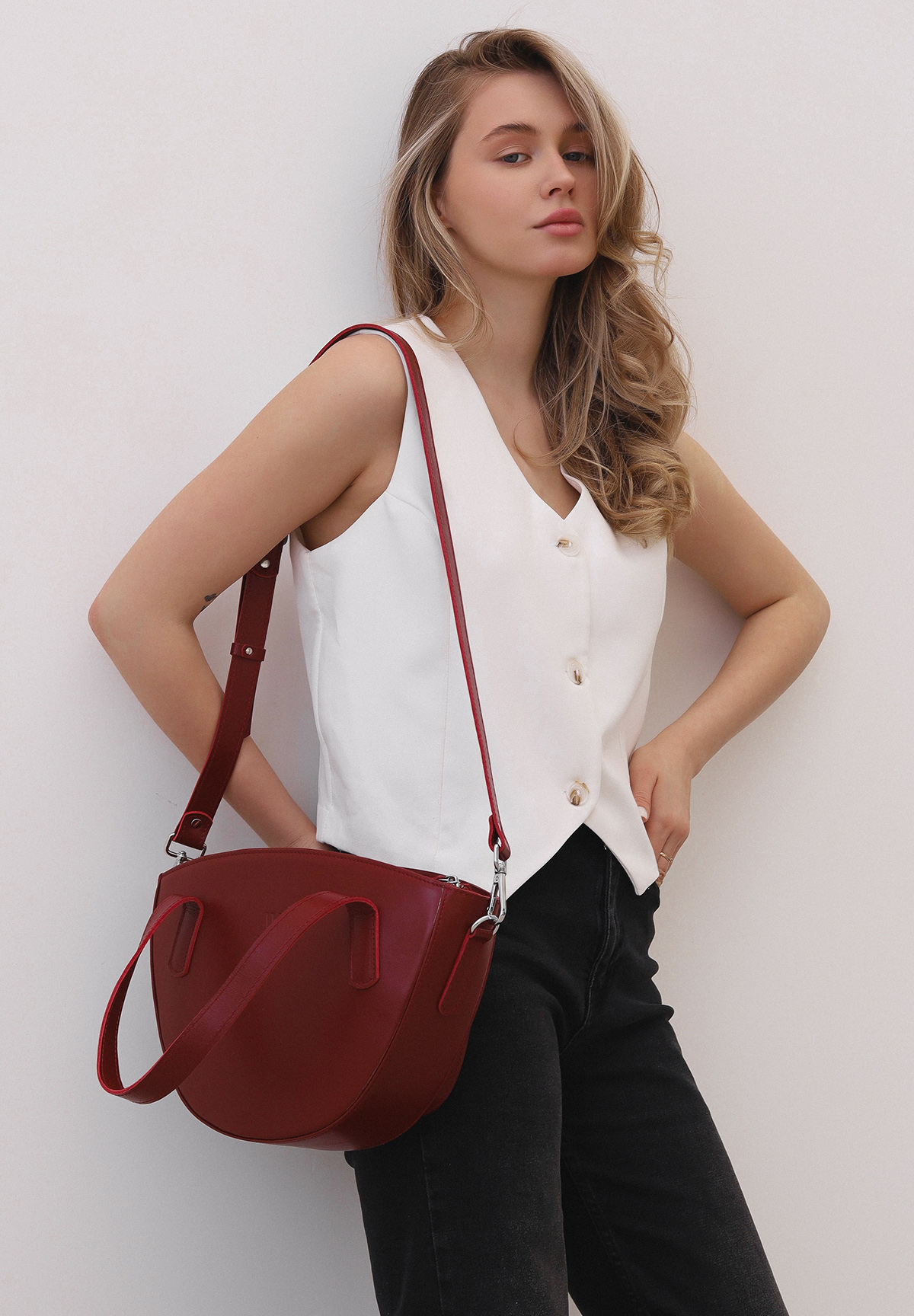 Сумка Bella — це стильний та функціональний аксесуар, який стане чудовим доповненням до будь-якого образу. Її елегантна напівкругла форма додає вишуканості, а продуманий дизайн забезпечує зручність і практичність у використанні. Сумка має короткі ручки, що дозволяють носити її на плечі або в руці, а також знімний довгий ремінець, що надає можливість носити сумку через плече для додаткового комфорту.