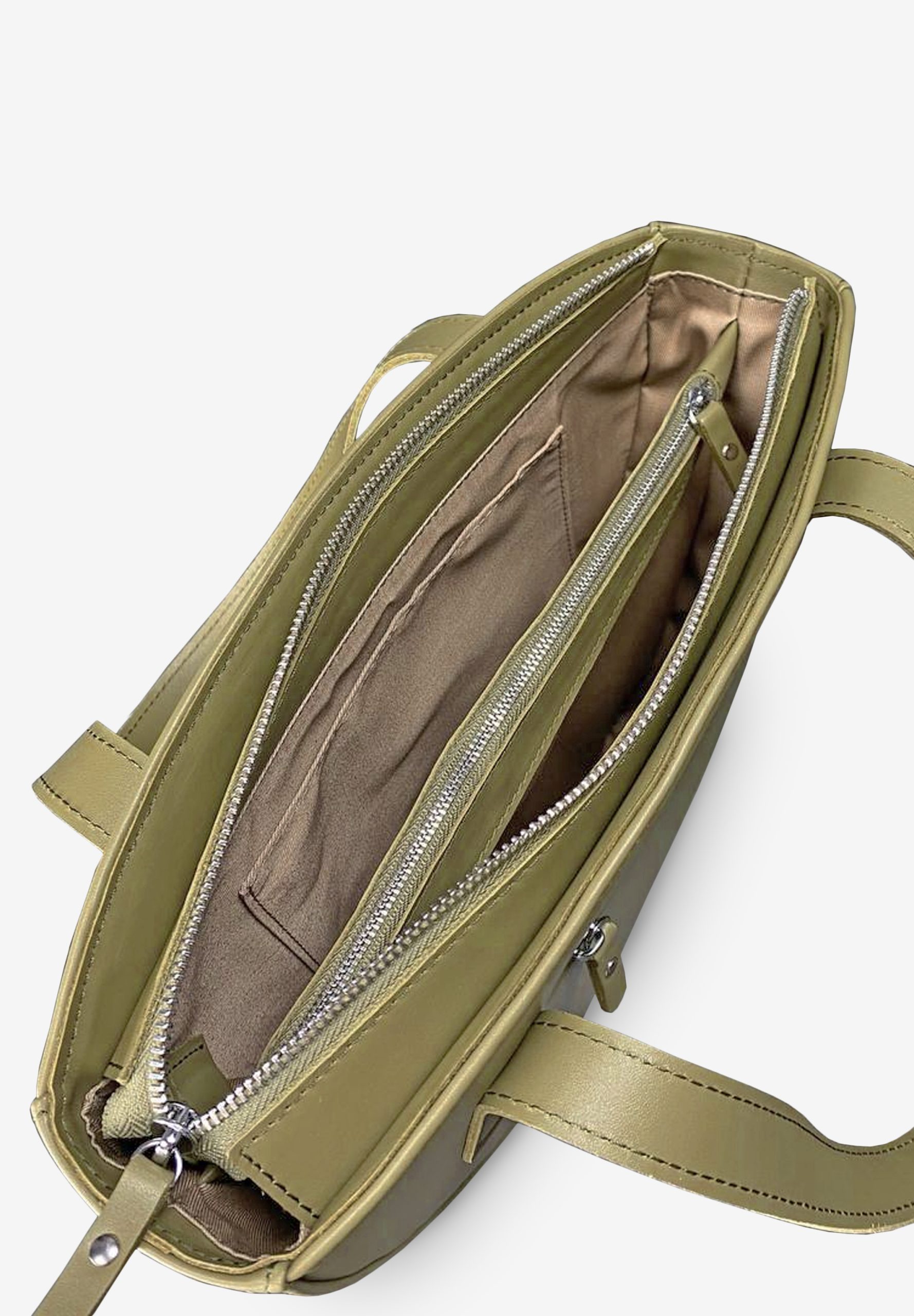 Внутрішня організація сумки продумана до дрібниць: є накладна кишеня для зберігання дрібниць, а також центральна кишеня-перегородка на блискавці для забезпечення ще більшої організації. Зовні сумка оснащена кишенею на блискавці, що дає змогу швидко дістати необхідні дрібниці, не відкриваючи основне відділення.