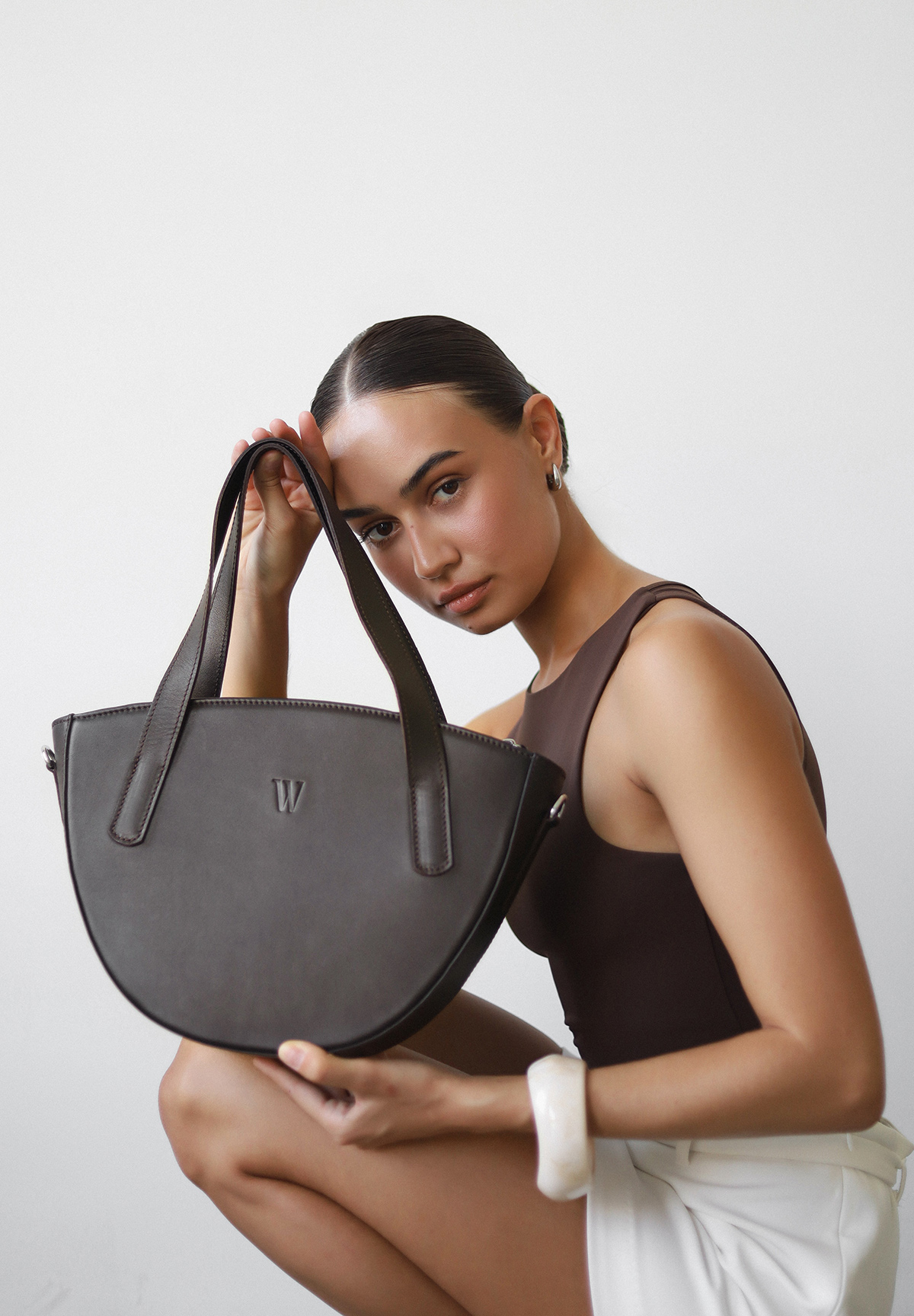Темно-коричнева сумка Bella — це не просто аксесуар, а втілення бездоганного стилю й упевненості. Її насичений шоколадний відтінок нагадує ароматну каву з ранкового ритуалу, а м’які лінії напівкруглої форми надають образу гармонійності та жіночності.