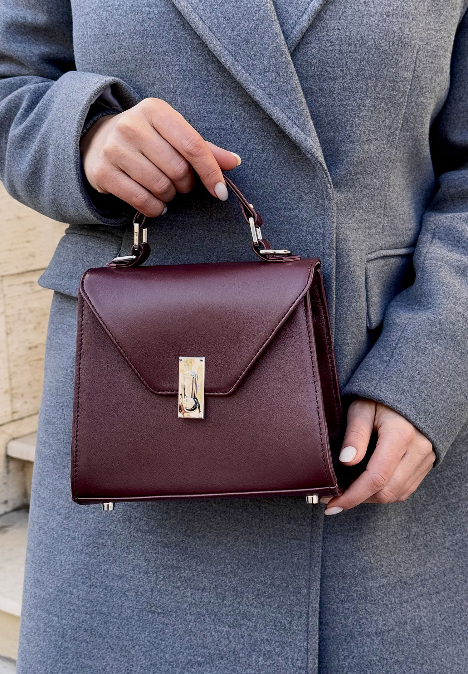 Жіноча шкіряна сумка Futsy бордова має форму трапеції, що надає їй особливого шарму. Вона виготовлена з високоякісної шкіри, яка гарантує якість і довговічність.