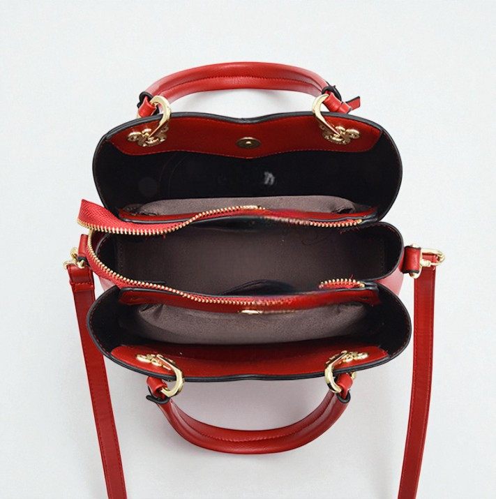 Жіноча сумка класична з брелоком вишеньками, сумочка для дівчат однотонна Червоний —