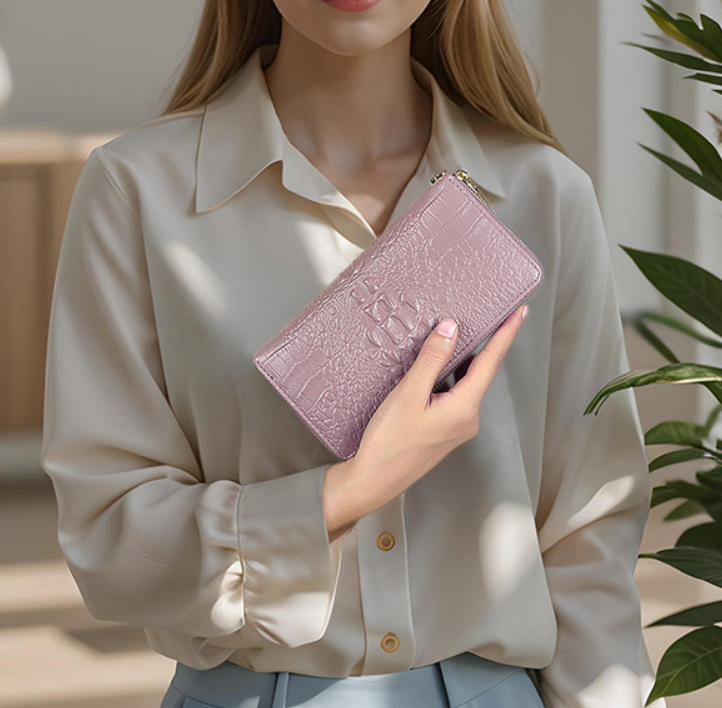 Жіночий клатч гаманець із натуральної шкіри рептилія, жіночий клатч-гаманець шкіряний Фіолетовий