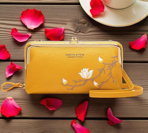 Жіноча міні сумочка клатч із вишивкою на плече, маленька сумка-гаманець на плече Жовтий