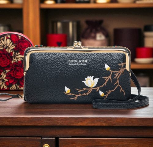 Жіноча міні сумочка клатч із вишивкою на плече, маленька сумка-гаманець на плече Чорний