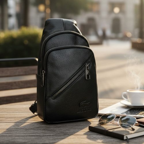 Чоловіча шкіряна сумка бананка стиль Лакоста, сумка-слінг для чоловіків із натуральної шкіри Lacoste